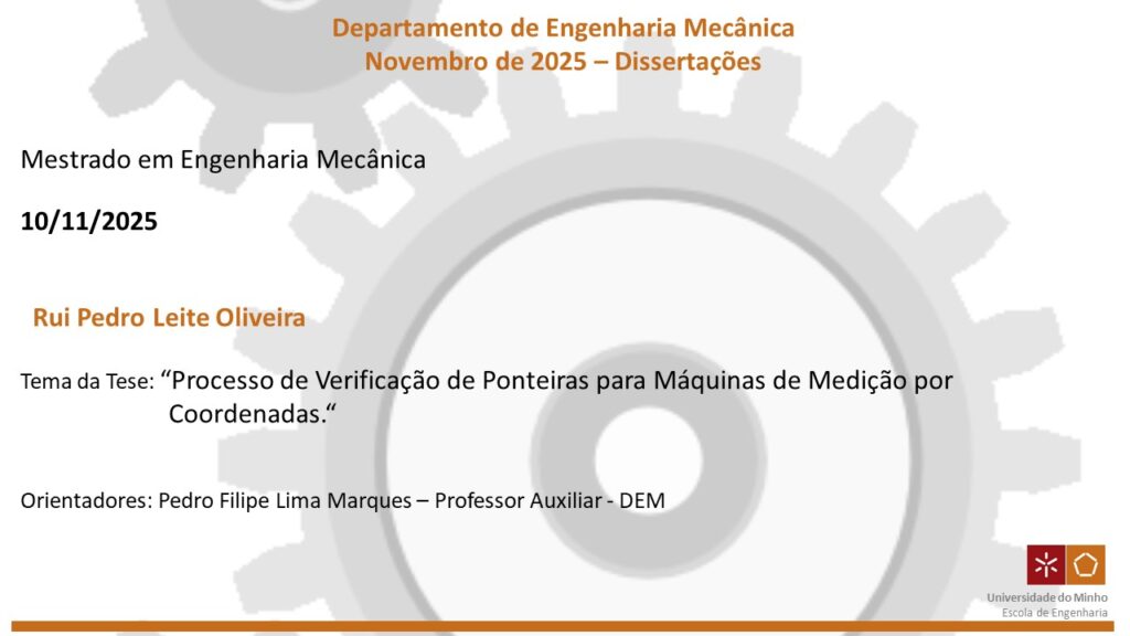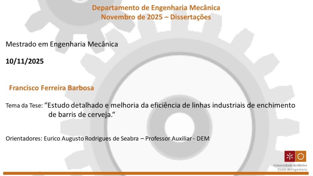 Dia 10 de novembro, defenderam as suas teses, do Mestrado em Engenharia Mecânica, os alunos: